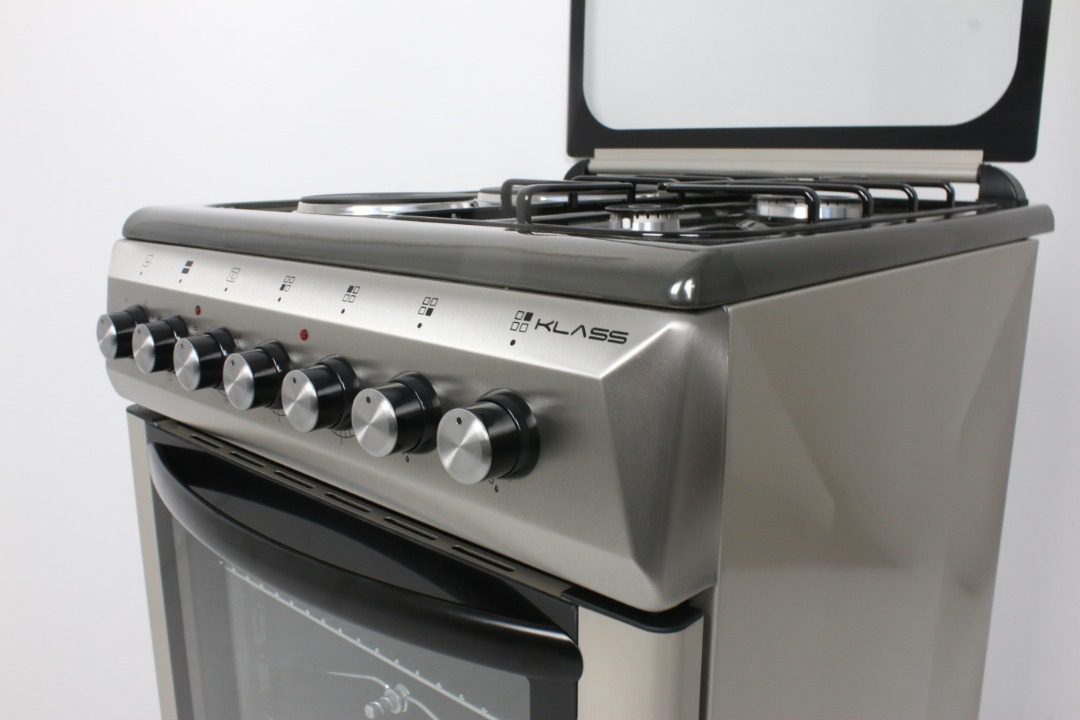 60x60cm electric oven up and down heating elements, thermostat E grill , 2muilt gas (euro type pool burner + 2rapid HP ,push button iginition for hob burners , metel top lid,bs plug, oven lamp , roteseries ,timer